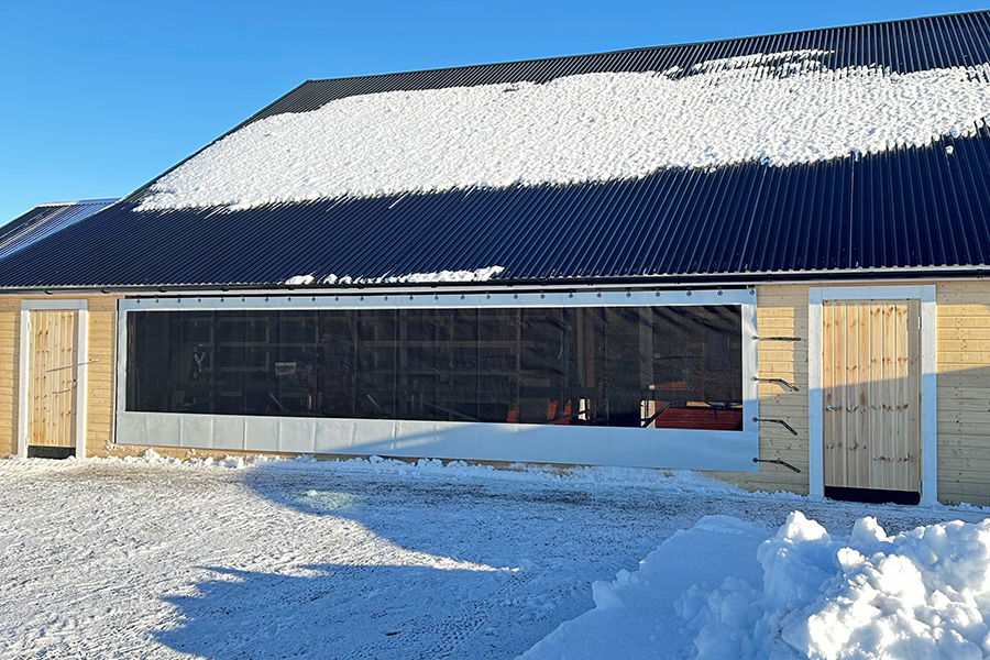 Nätdraperi som släpper in ljus och ger en bra arbetsmiljö om man har draperiet stängt. Nätet gör att hela utrymmet ventileras så det blir minimalt med fukt.